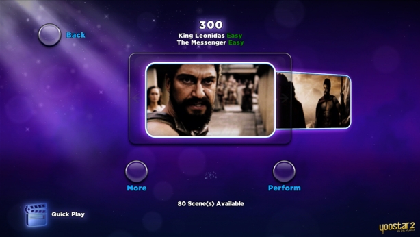 If you invested in an Xbox LIVE Vision Camera all those years back, you might feel a certain similarity to a title called “You’re in the Movies!” when you get involved with a heavy play session of Yoostar 2. The premise is rather simple. Standing in front of either the Xbox 360 Kinect Sensor Bar or the PlayStation Eye, you will navigate menu’s with either your hands (Kinect) or the PlayStation Move controller, selecting clips of films that you would like to try your hand at performing.
