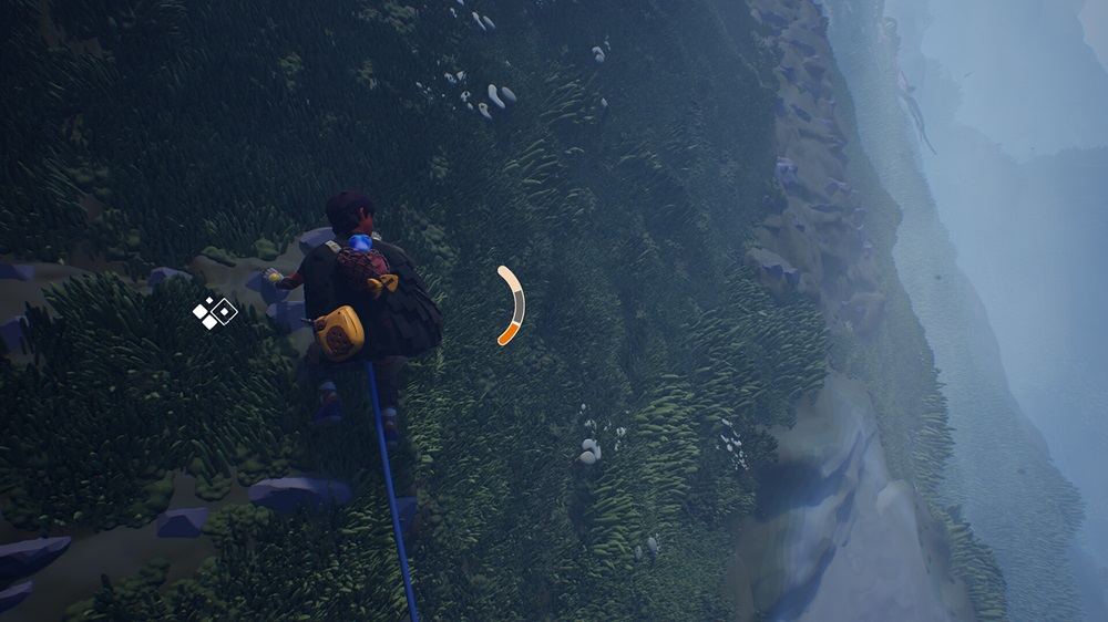 You can launch your rope at hanging hooks to allow you to swing across huge open spaces, move platforms to get you higher, climb up moving rock creatures, and with your cute little buddy, the plants can help you as well. Ballast is a blue critter that sits on your shoulder and can help you find your next objective, but he will also react to the environment to make it work in your favour. It can extend thick blue vines, grow numerous petals for you to climb on, and use tiny flecks of light to carry you up higher. There’s always a way to harness the nature you encounter, and it’s beautiful to watch.